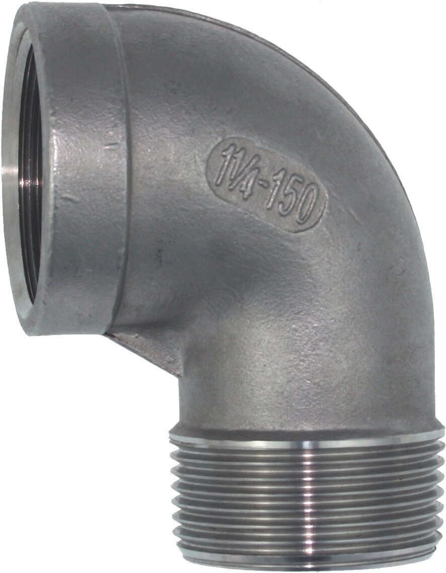 Albue/Bend "han/hun" 90° med innvendige og utvendige rørgjenger. Laget i syrefast stål 316.