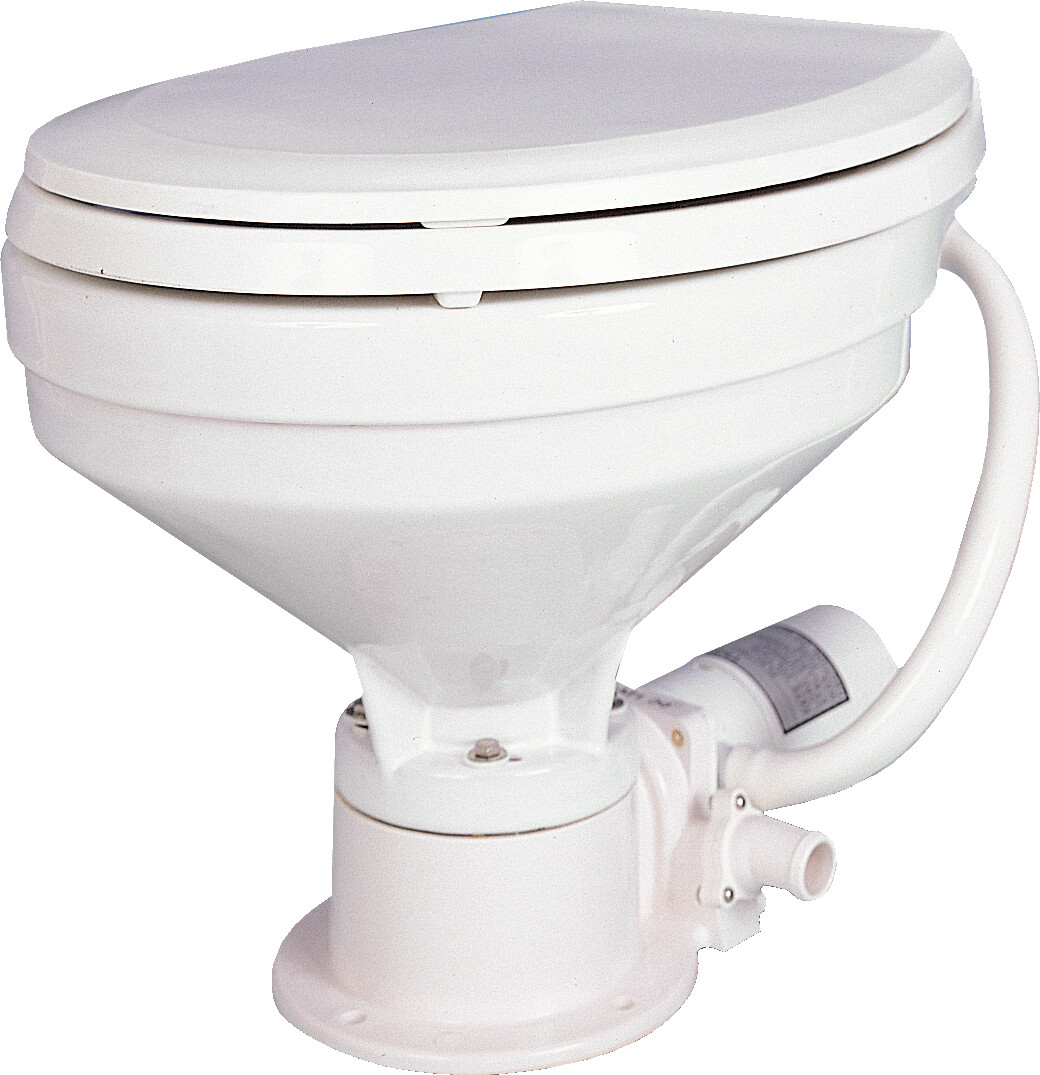 Et godt og praktisk toalett som er utviklet for båt. Funksjonelle løsninger og ergonomisk design.Toalett med porselensbolle og sete/lokk i plast. Den elektriske pumpen har innebygget avfallskvern, og kan pumpe avfallet opp til 1,5 m høyde.
