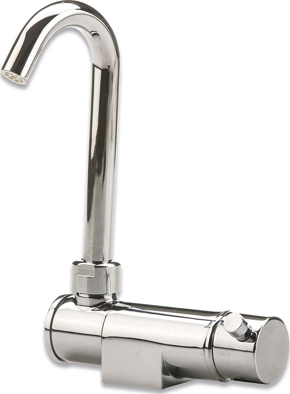 Lekkert blandebatteri laget i forkrommet messing. Tuten kan foldes ned når den ikke er i bruk.