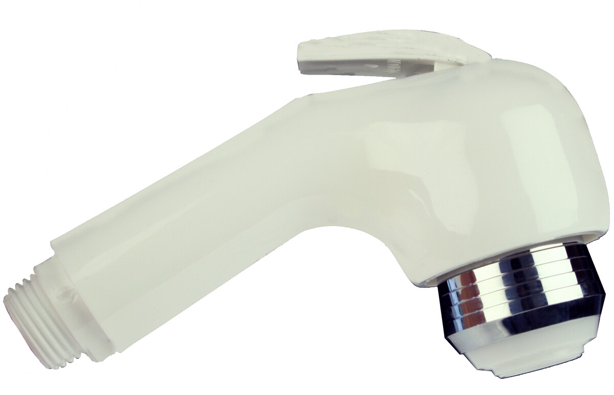 Dusjhode i plast med justerbar stråle. Vippekranen brukes til å åpne/stenge for vannet, og kan også settes konstant åpen. Passer til dusjslange 1004413.