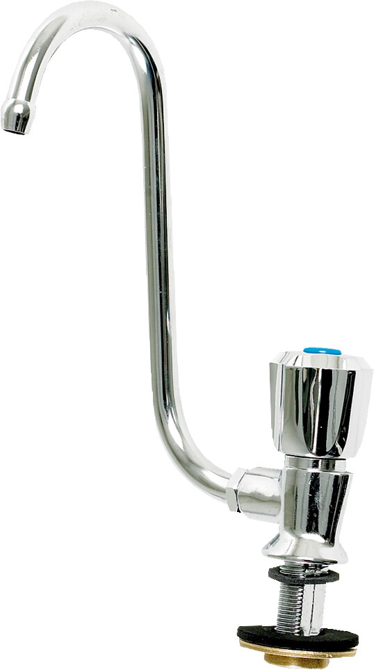 Italiensk trykkvannsarmatur i forkrommet messing av førsteklasses kvalitet. Kranene har 10 mm tut, som kan svinges nedover. Høyde over benk med utløpsrør nedslått 70 mm.