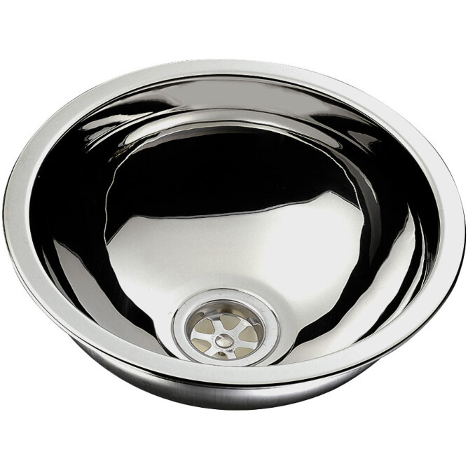 Rund stålvask med flott, eksklusiv finish. Den avrundede formen gjør denne optimal til bruk på bad. Vasken kommer i to størrelser.